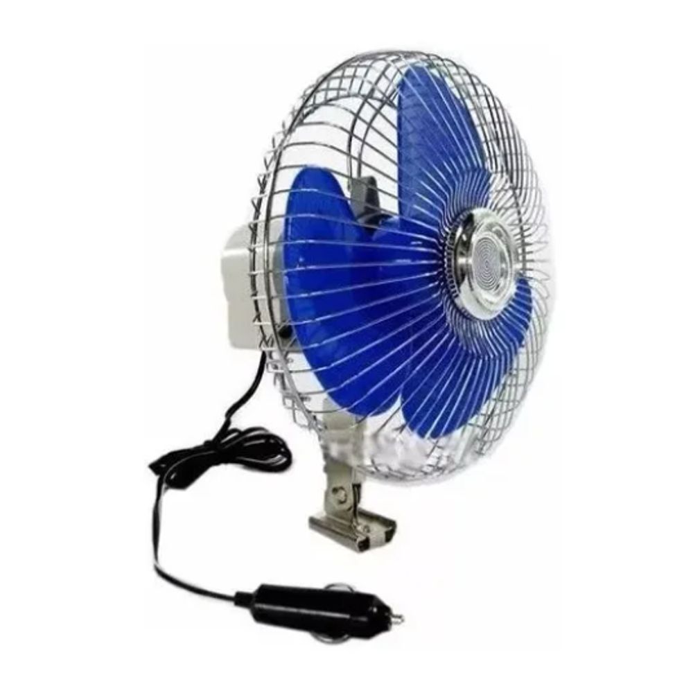 O VENTILADOR AUTOMOTIVO CINOY POSSUI PLUG PARA LIGA-LO AO ACENDEDOR DE CIGARROS, 20CM DE DIAMETRO E BOTÃO DE OSCILAÇÃO.