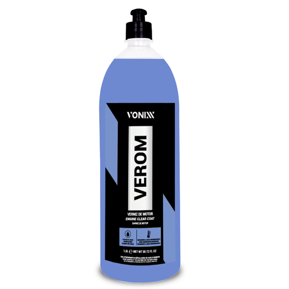 VEROM é um verniz de motor a base de água, que protege, dá brilho e renova todas as superfícies existentes no cofre do motor, como partes metálicas, plásticas, superfícies pintadas e mangueiras de borracha. O produto forma um filme que penetra em locais difíceis e adere em todas as superfícies citadas.